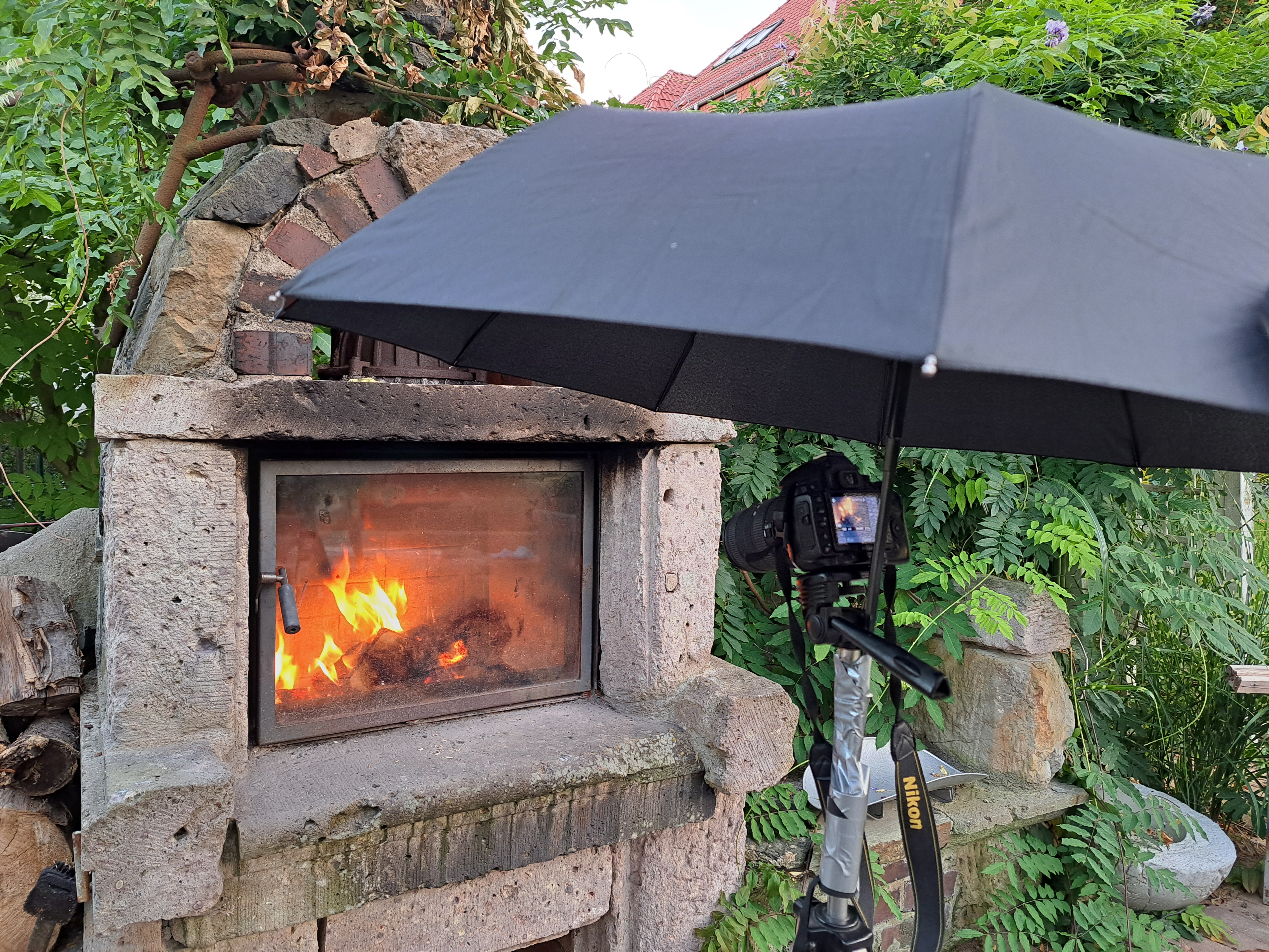 Das Bild mit dem Schirm zeigt übrigens das Making-of unserer Abbrand-Videos.