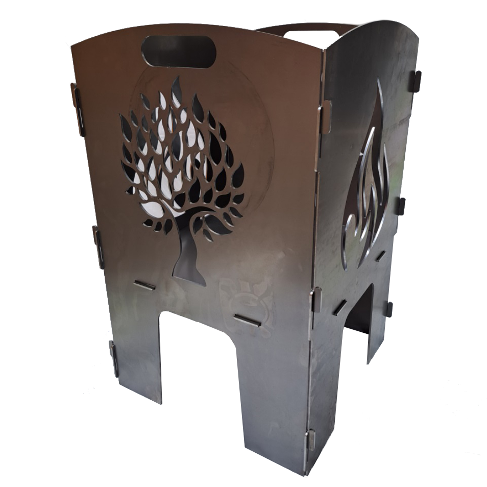 Feuerkorb steckbar - Motiv: Flamme + Lebensbaum zur Selbstabholung